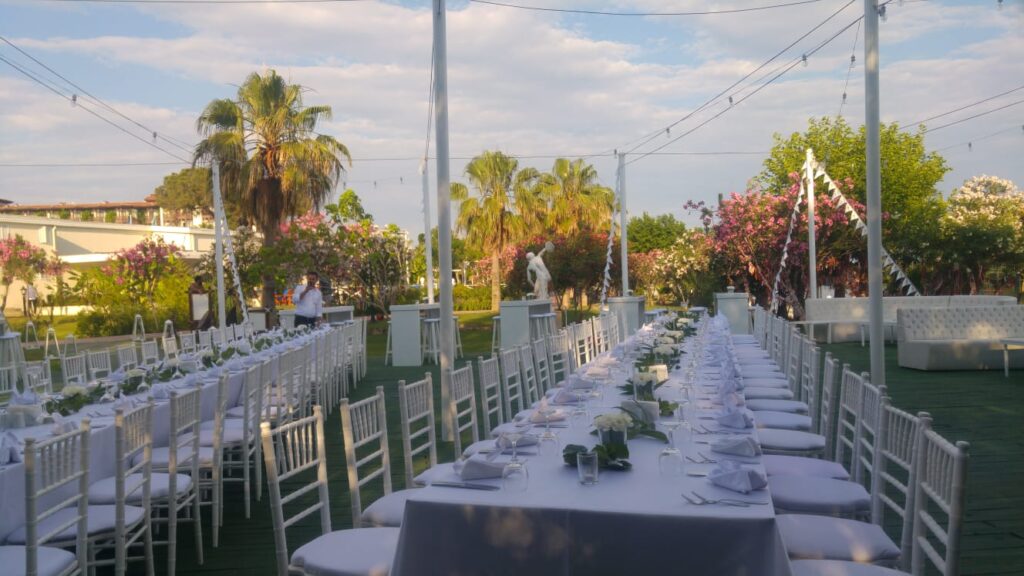 - Sandalye Kiralama: Şeffaf, Tiffany, Thonet gibi zarif modellerle konfor ve şıklığı bir araya getiriyoruz.