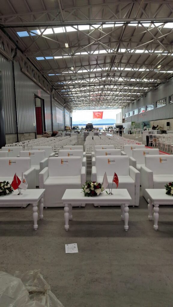 Özellikle fabrika açılışı organizasyonları, kurumsal davetler, resmi törenler ve protokol etkinlikleri gibi yüksek hassasiyet gerektiren projelerde, firmaların ihtiyaç duyduğu her alanda A’dan Z’ye organizasyon ekipman kiralama hizmeti sunmaktayız.